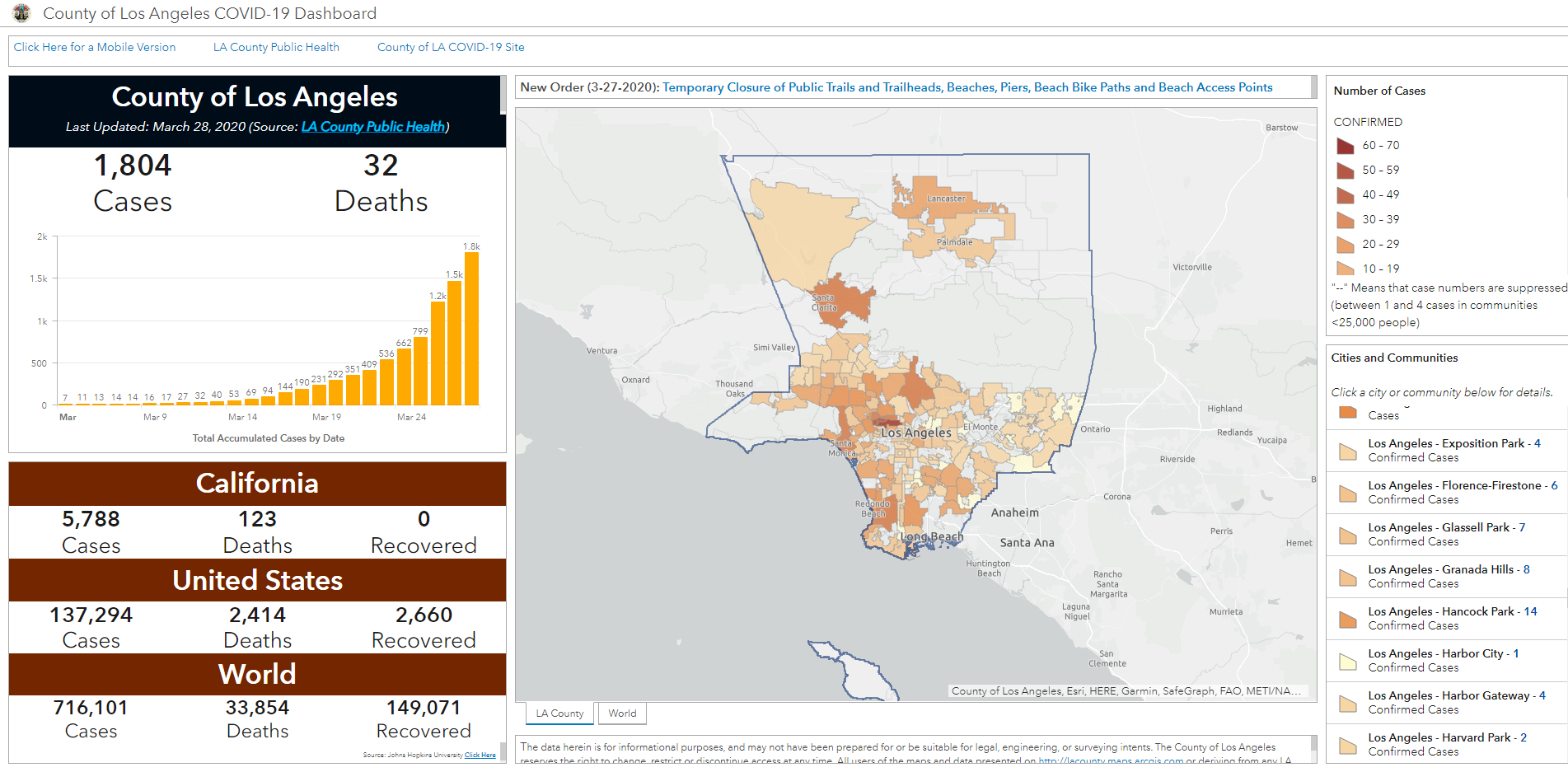 Interactive Map View All The Los Angeles Neighborhoods With Confirmed Covid 19 Cases